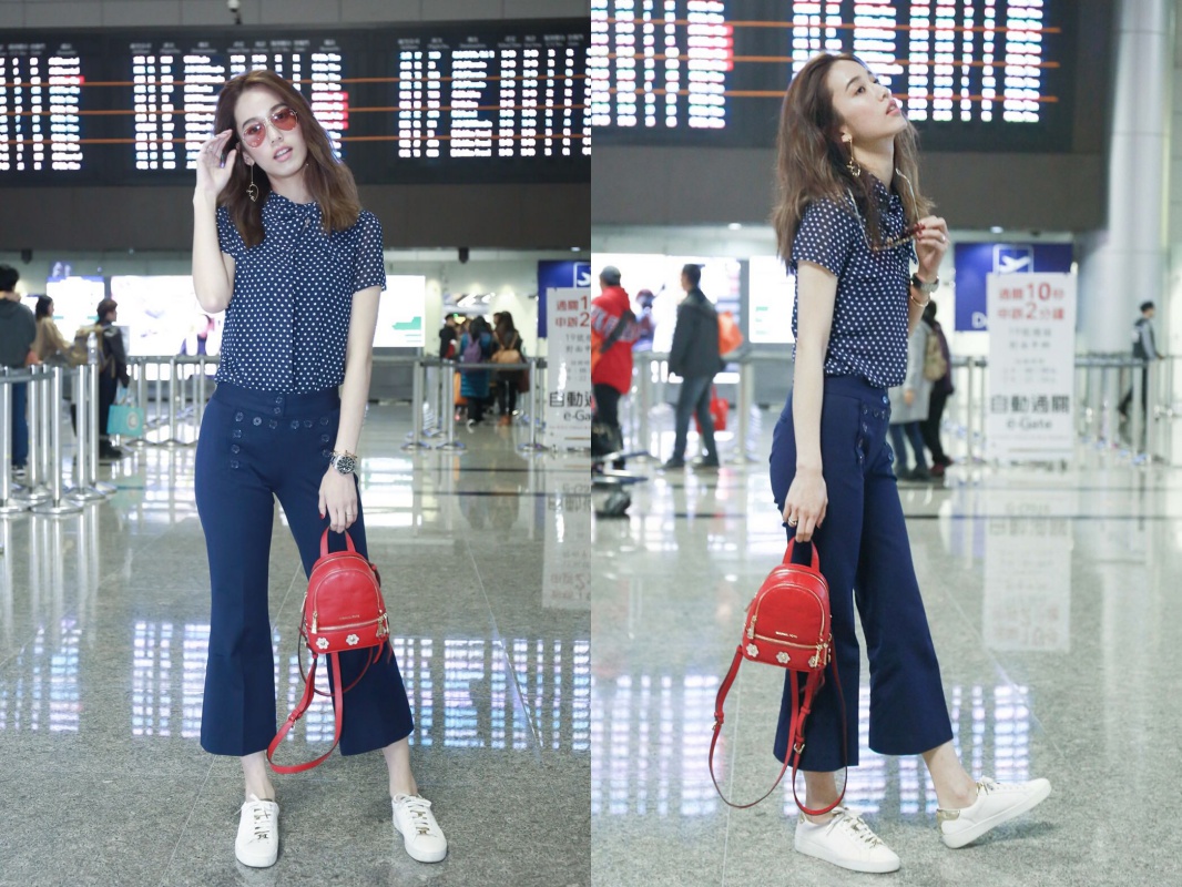 紐約時裝周正在熱鬧開演中,陳庭妮獲邀準備前往觀賞Michael Kors Collection 2018秋冬時裝秀。陳庭妮穿著MICHAEL Michael Kors 2018春季新品系列,復古波卡圓點的雪紡襯衫搭配深藍色休閒九分褲,純白和海軍藍交織出時髦率性感,搭配Rhea Zip紅色立體花卉系列迷你後背包,摩登又俏麗的造型現身桃園機場。