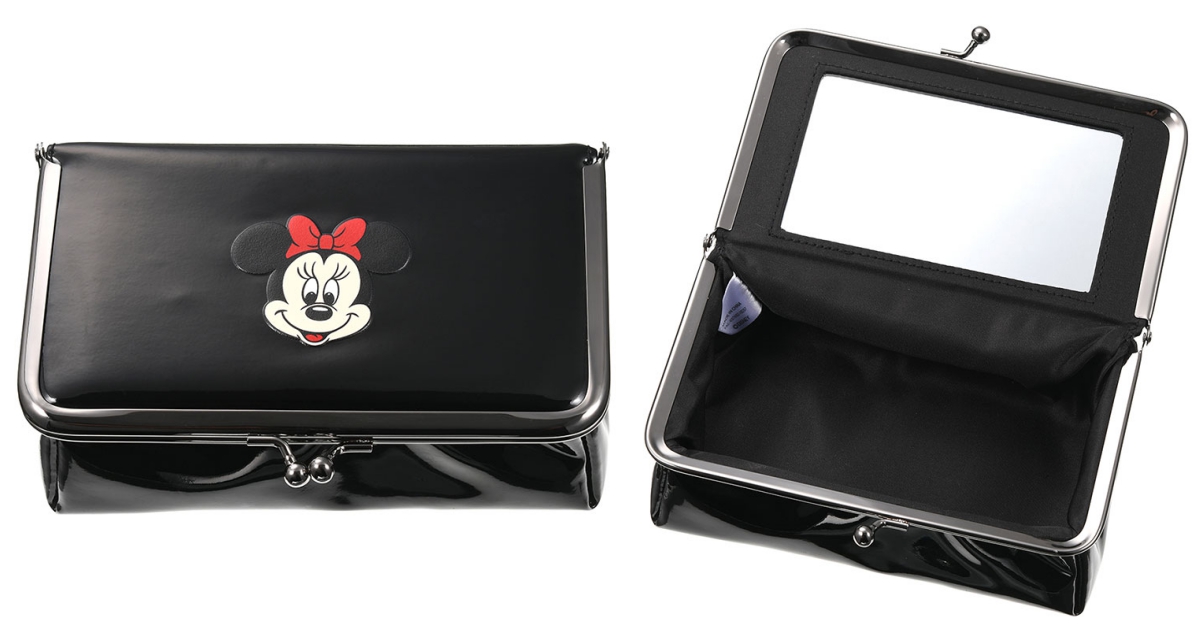 簡約時髦的米妮化妝包,黑色皮革設計,打開來還有一面大鏡子,在外面也能方便補妝,實用度好高!
