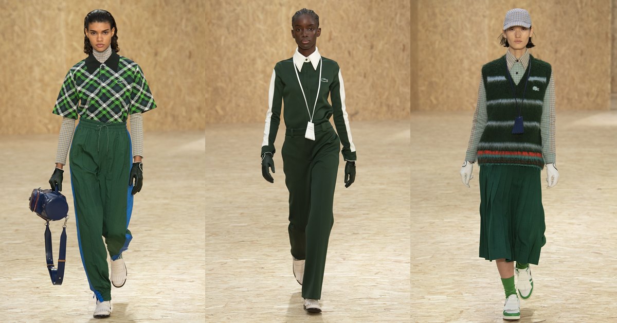 LACOSTE 2020秋冬秀款系列主打優雅感與運動功能性兼具,主打洗鍊優雅感,無論是潮流都市穿搭或是在運動場合,都完美演繹「法式運動休閒時尚」。本季以LACOSTE標誌性的LACOSTE綠色色系帶來鮮明的視覺,搭配紅土球場的磚紅色調、糖果粉、檸檬黃等生動活潑的色彩,喚醒了週末在球場與三五好友們揮汗廝殺的美好回憶。創意總監Louise Trotter充分發揮她擅長的極簡主義、結構設計,讓進階版的運動風城市休閒穿搭,更加俐落有型。在舒適輕鬆的訴求之下,採用機能彈性面料剪裁出運動夾克和長褲,並從法式時尚汲取靈感,運用散發貴族氣息的葛倫格紋(Glen Plaid)、維希格紋(Vichy)等圖樣,為運動休閒挹注時尚風潮。