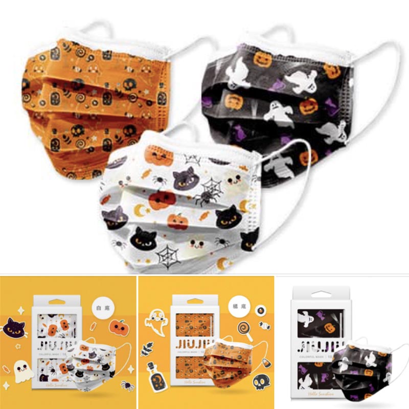 除了不分時節的莫蘭迪漸層色系口罩,也特別因應萬聖節,推出超Q的萬聖節印花南瓜口罩:白底、橘底跟黑底,印上可愛的南瓜、黑貓、幽靈,滿滿的萬聖節元素,俏皮又可愛。