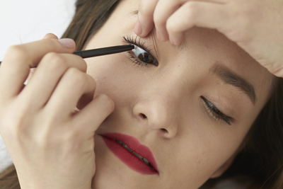 2.用黑色眼線膠筆或眼線筆,畫上內眼線,將睫毛根部徹底補滿。
