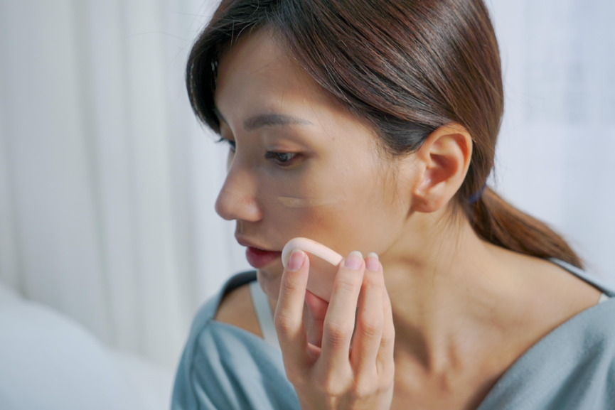 近看可以看到在臉上呈現的質感,個人非常喜歡自然清透的感覺。