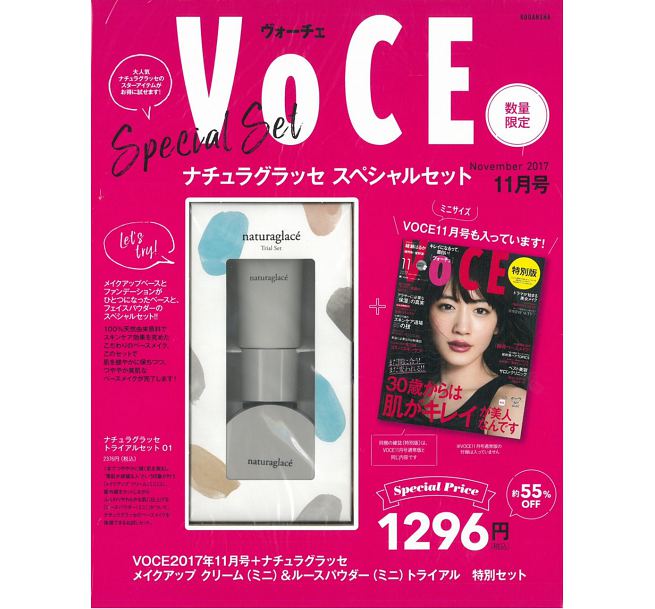 有服裝特刊當然也有美妝特刊囉!日本美妝扛霸子VOCE特別出了附有naturaglace妝前乳+蜜粉的秋天特別版,就是要告訴大家秋冬底妝該換季,順便給大家台灣買不到的naturaglace珍品試用!可以先try新品,又可以掌握秋冬美妝新資訊,真是太感人了!