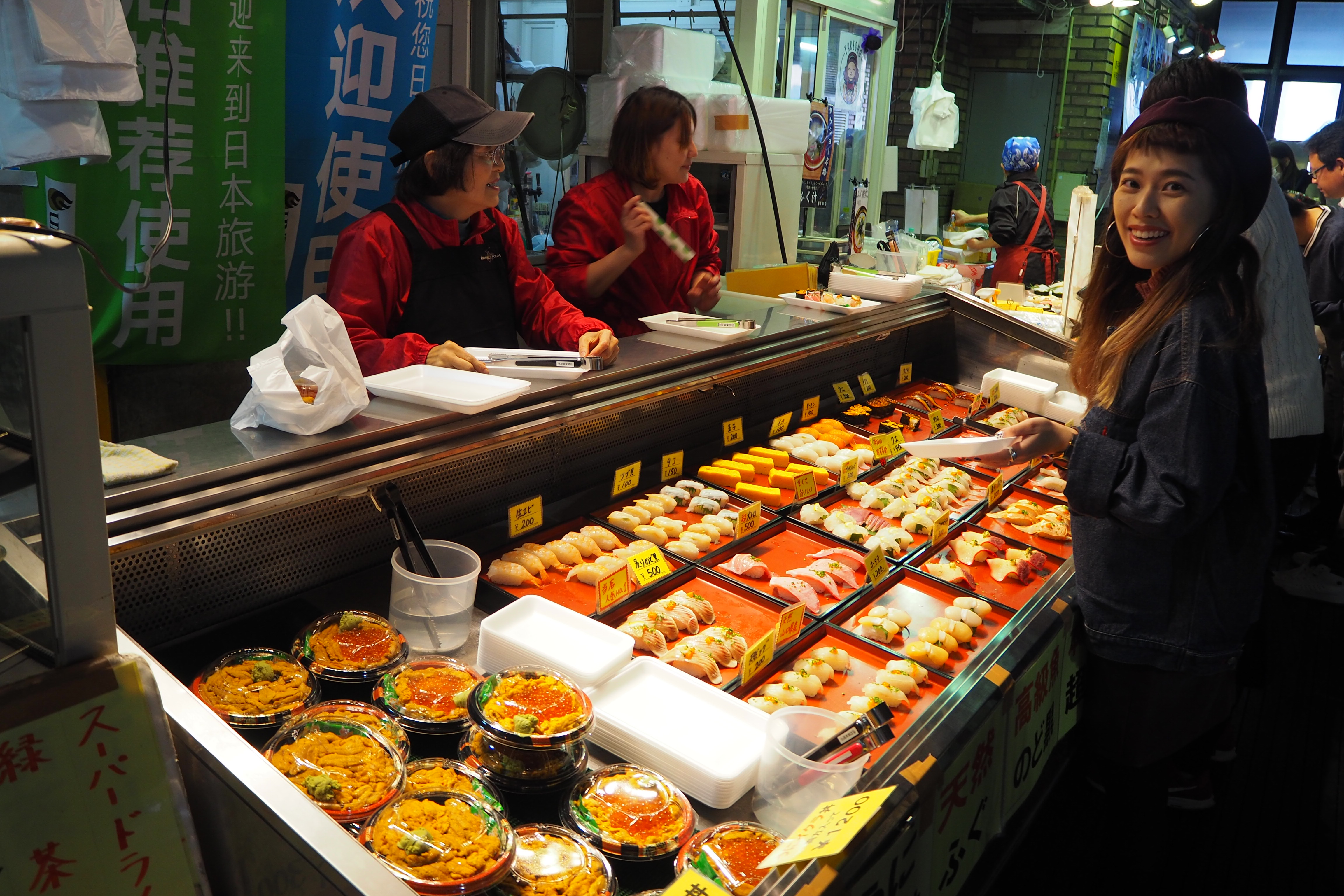 在旦過市場內,你可以從「市場頭」沿途吃到「市場尾」,不管是甜點鹹食、小點正餐通通有,甚至還可以到「大學堂」買碗白飯,沿途就請店家將你喜歡的珍饌擺在騰著熱氣、閃著光芒的米飯上,完成一碗屬於你自己獨一無二的丼飯,不僅好玩又好吃!