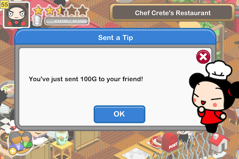 就算你離開了遊戲,餐廳還是持續在運作中唷!當你重回遊戲,Pucca會跟你報告你離開的時候,他們又賺了多少錢!