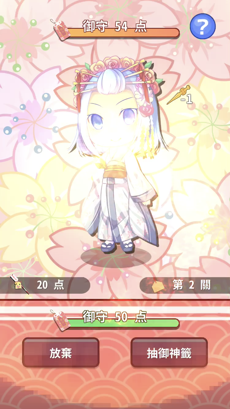 遊戲方法非常簡單,點擊繪馬就能進入關卡,進入關卡之後會出現籤筒,這時候再按一下籤筒抽取御神籤,回答出現的漢字題目吧!