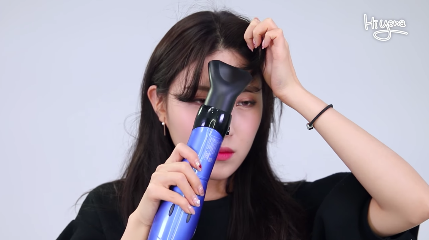 讓瀏海很有弧度的重點在於,在吹頭髮的時候可以抓住尾部,等頭髮冷卻之後再放開,就可以塑造很彎的瀏海