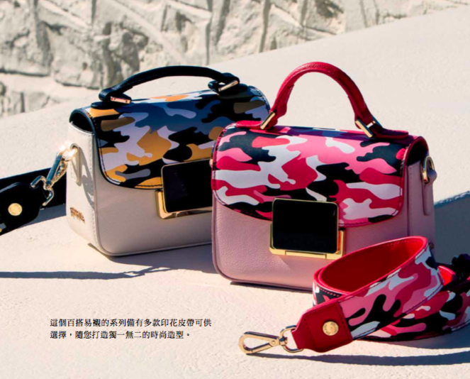 偶爾想要給人不一樣的感受,那就利用個性的迷彩配件吧!有著帥氣感卻又不失可愛的#Rebel Riviera系列,迷彩圖樣染上了小型方包上,更有同款皮帶可以改變成肩揹包。試著狂野冒險一次卻又不失優雅的迷彩style吧~整個心情也跟著撲通撲通跳掉著!