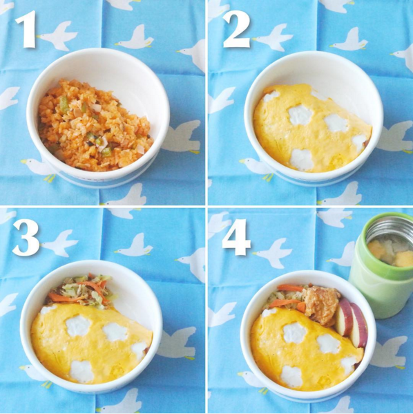 將其他食材作為緞帶,一份擁有點點包裝的蛋包飯便當就完成了!