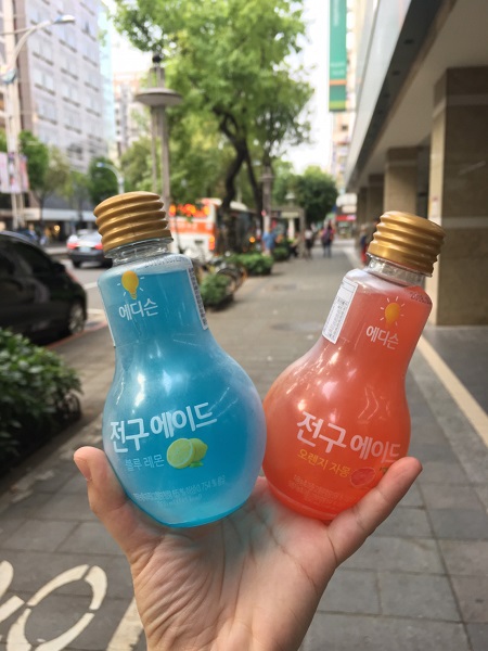 繽紛色彩搭上燈泡造型瓶,橘色和藍色設計分別搭配柳橙葡萄柚和檸檬果汁,讓妞妞們好拍又好喝!