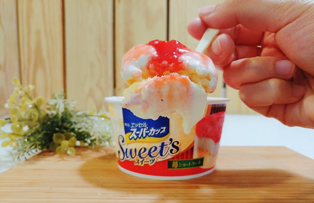 湯匙滿滿挖起能一次嘗到四層風味,草莓果肉、鮮奶冰淇淋、卡士達醬冰及餅乾,豐富的食感超級滿足!