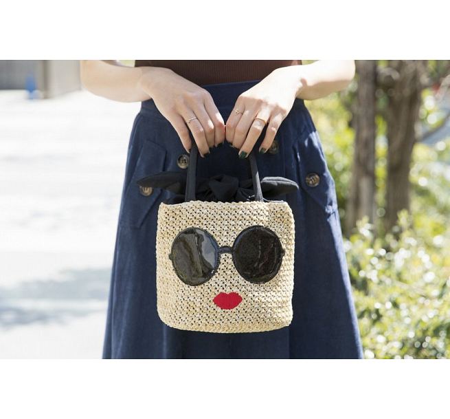 超人氣品牌a-jolie情報特刊,將送出限定的太陽眼鏡款特製編織提包,大大的黑框眼鏡、擦了大紅色口紅的嘴唇,給人留下深刻的陽光季節印象,是女孩們在今夏不可錯過的一款隨身時尚小物商品,而且提包上面纖細的編織花紋圖案,讓這款提包物超所值,另外,編織提包內的黑色金字品牌布料也可當作束口袋來使用,不但突顯編織提袋的特色,且使用法還可以做不同的變化組合。