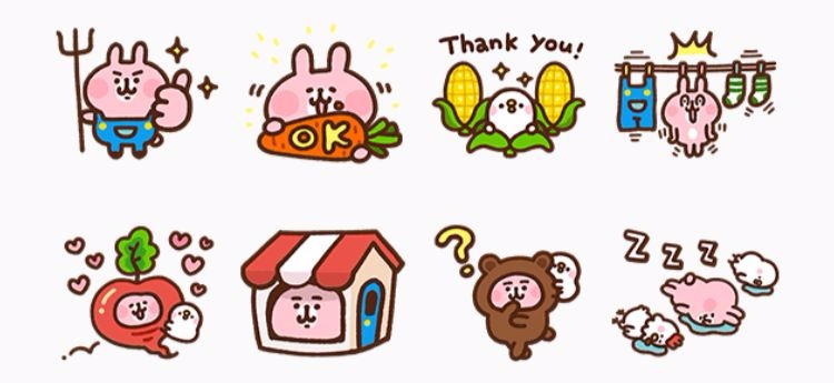 這次的卡娜赫拉限定版貼圖總共有八款,看看那化身成農作物的兔兔與P助可愛的樣子,根本萌到要叫警察了啦(逼逼逼)!如此療癒你捨得不載?!手機小姐提醒一下各位,這款貼圖的下載期限至11/8,粉絲們千萬不要錯過了呦~~