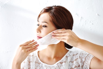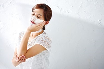 將眼睛以下的臉部塗滿面膜,一直到鎖骨以上。