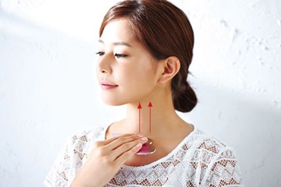 緊貼脖子,從鎖骨處往上滑動3次。