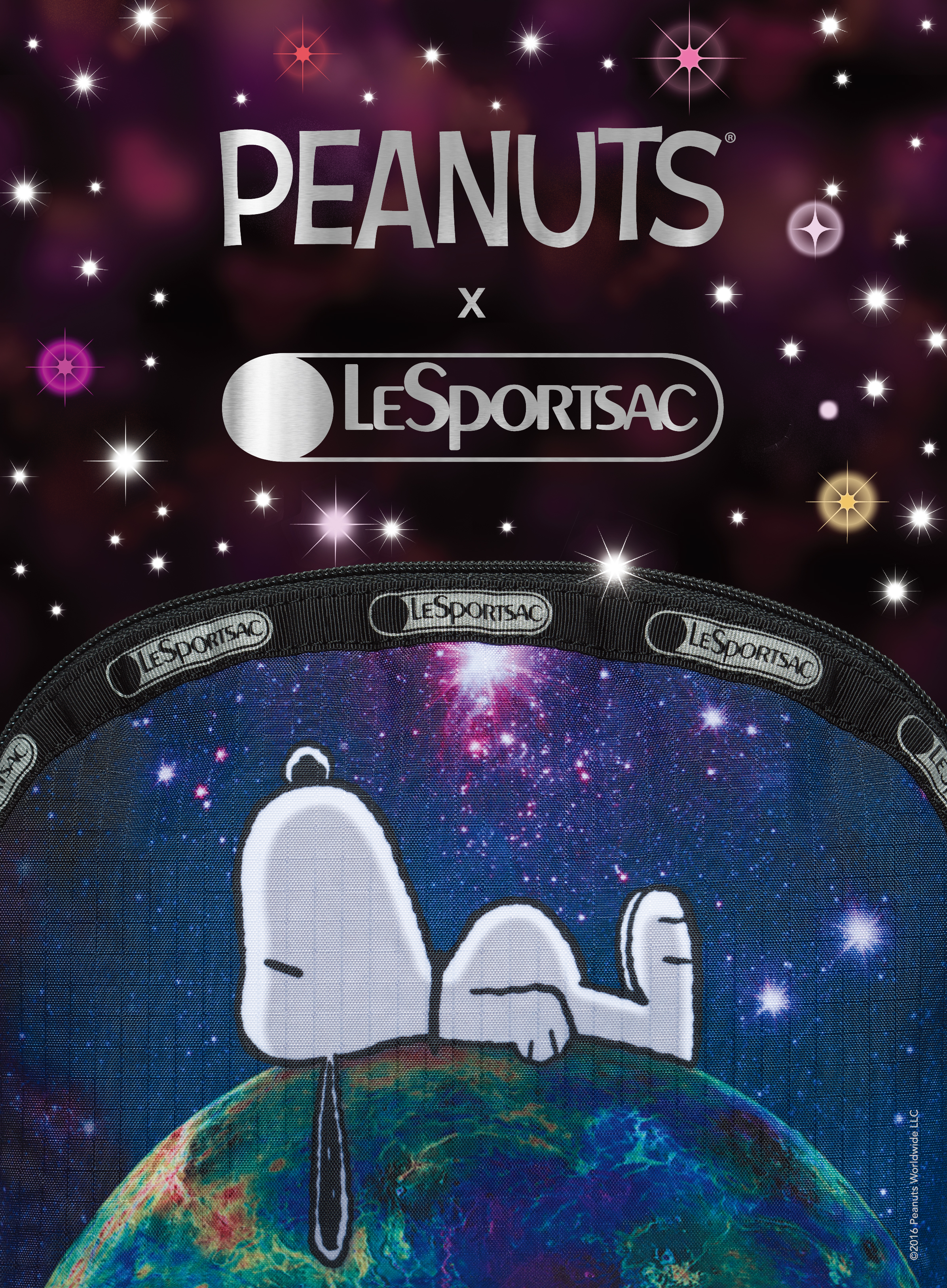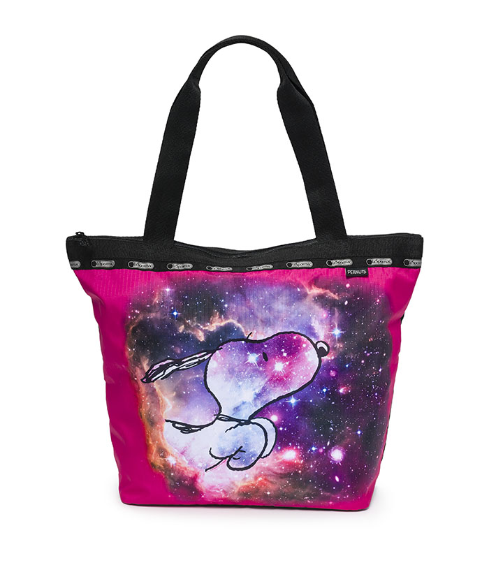 今年冬季Peanuts×LeSportsac即將帶著Snoopy和你一起漫遊銀河外太空!超乎你想像的冬季聯名系列,靈感來自於美國NASA太空總署的外太空照片,亮粉紅的「Galaxy Tote」托特包以及「Galaxy Snoopy Small」化妝包,秀出了Snoopy奔向粉紅與紫色交織的星空,充滿想像又炫麗!「Top of the World」貝殼型化妝包則可以和Snoopy一起躺在地球上,仰望著擁有無數星星的美麗銀河;超可愛的「Snoopy Good Night」方形化妝包則讓你和Snoopy一起進入甜美的夢鄉!新的冬季連續印花還有「Snoopy In The Stars」-俏皮的Snoopy拉著銀色星星,在藍紫色的星河漫遊,看起來夢幻又有趣;「Snoopy Stargazer」則有愛好天文的Snoopy,穿著太空裝和好朋友們一同在藍色外太空探險!