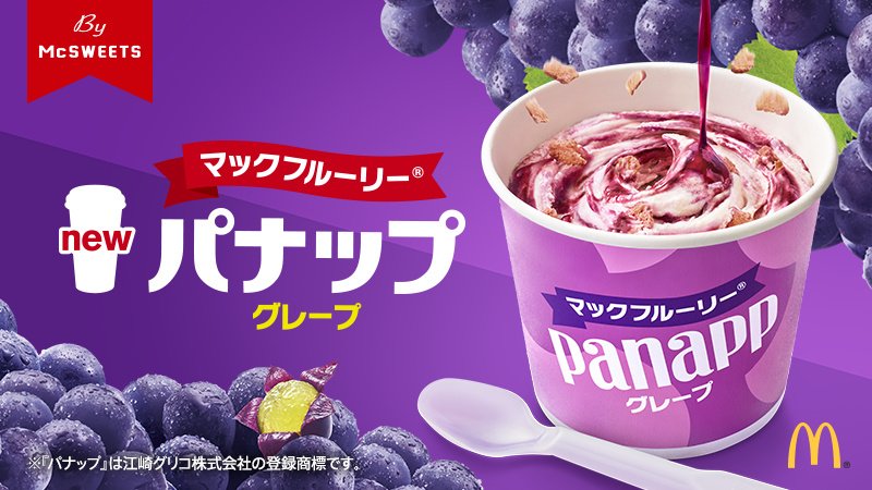 第一款是10月25日起,麥當勞與知名冰品panapp聯名推出的葡萄冰炫風,將香草霜淇淋與panapp葡萄充分mix後,不論是濃郁的水果香氣還是美麗的色澤,都讓人食指大動,上頭再加上一些甜筒脆片增添口感,天氣再冷還是抵擋不住想吃的衝動啊!