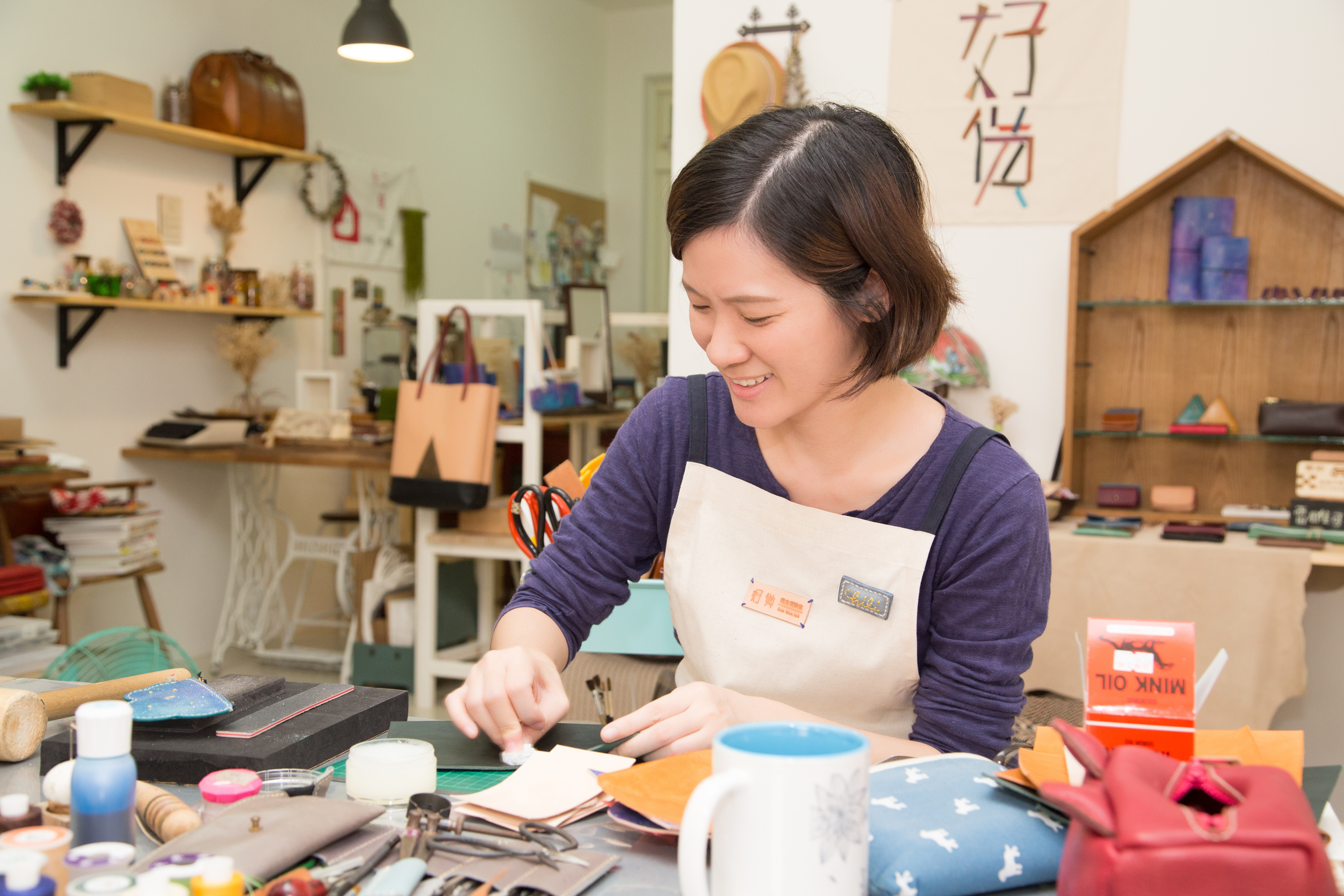 工作坊的其中一項理念讓妞編輯印象很深刻:「手作是一種溫度,將藏在腦海中的概念及夢想,透過雙手重覆試驗,醞釀成溫潤的商品,讓更多人擁有屬於自己的小確幸。」雖然喜歡的商品可以透過購買取得,但自己親手從最初的一片皮料慢慢敲敲打打縫製出成品,其中飽含的心意與成就感真的無法被取代。看完今天的專訪也想體驗創作課程嗎?快到妞新聞來趣窩課與好貨概念實驗室合作的報名頁面手刀下單吧〜