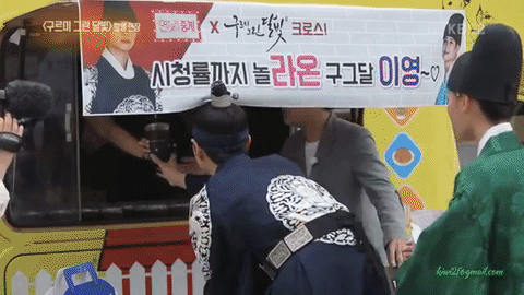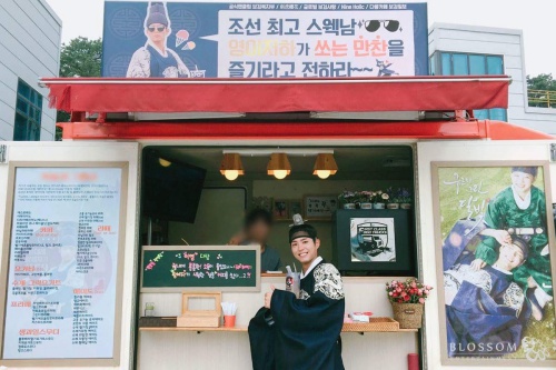 韓綜《演藝家中介》更親自開著餐車到《雲畫的月光》現場支持兼應援,而且收視率已經破20%了,歷代最帥的世子什麼時候要穿著韓服在光化門舉辦粉絲簽名會啊!(可以加碼跳〈Bombastic〉,求求世子)(30%求出演游擊約會)