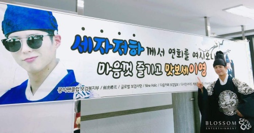 寶劍世子,樂瑥的前世情人呂珍九來搶你的女人啦!韺瑥情侶好友呂珍九親自送上餐車應援了~看看看板上甜甜地寫著「李韺世子朴寶劍、洪羅溫金裕貞,加油吧!」,寶劍更回覆:「托珍九的福有力氣了,謝謝!」,其實世子的真愛是珍九吧。(偽男男戀,嗷~嗚~)
