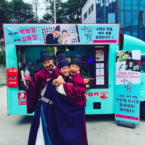 同劇演員更在珍九的餐車應援前面搞笑認證,金義教你不是領相大人的爪牙嗎?給我們放開邱哈~(勳南啊~兵沿啊~快去救世子)