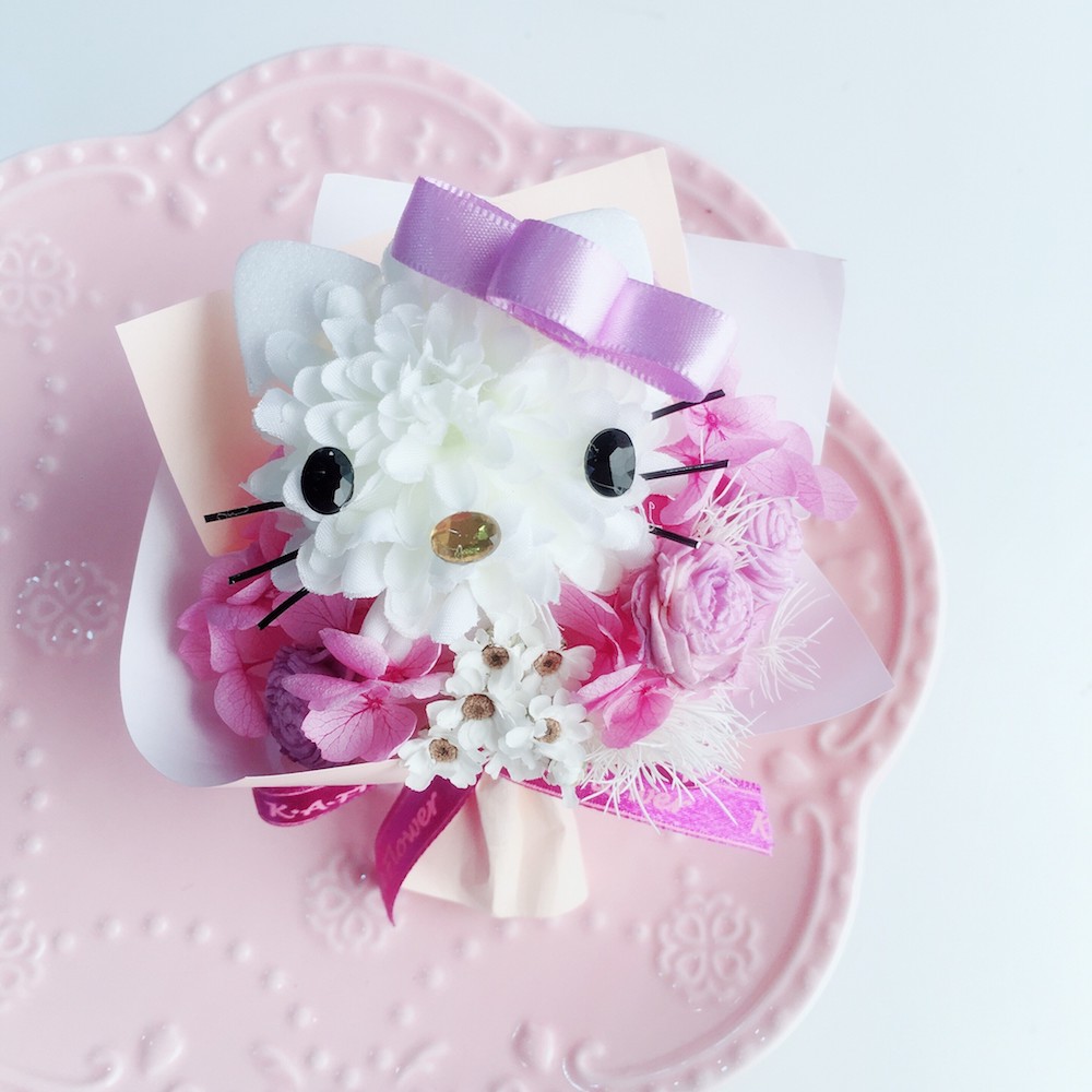 近幾年很流行用乾燥花、永生花佈置空間,妞妞們即使沒有要送人,自己買來擺在房間裡面,可愛又漂亮的Kitty小花束看了心情也會很好~
