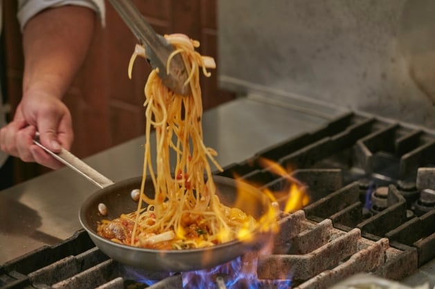 特別是這次硬體設備的大升級,以加熱板取代電磁爐,不僅餐點能夠上下平均受熱,不影響食材的品質之餘,在視覺上更是達到大大加分效果;西式現烤區使用「炭烤爐台(