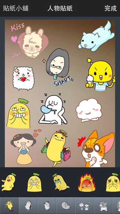 利用《BananaCam Pro》進行照片後製,不只會自動加上日期、地點(可以自訂20多種字體),還能放上可愛的白爛貼圖,讓你的出遊照也可以玩得比別人有梗!