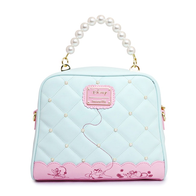 另一款手提肩背包以優雅的菱格紋打造而成,辛苦的小鳥和小老鼠在手提帶、包面上鑲上一顆顆氣質珍珠,中央的蝴蝶結更費心掛上(笑),精緻的設計讓你一秒從灰姑娘升級公主!