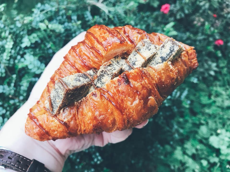 這次快閃店主推的限定新品就是「沖繩黑糖蕨餅可頌」,來自日本產地直送的蕨粉與沖繩黑糖,手工調製成黑糖蕨餅,再撒上新鮮黃豆粉與黑糖淋醬,香氣濃郁又有滿滿日式風情,口感也不會過於甜膩,一吃就上癮。