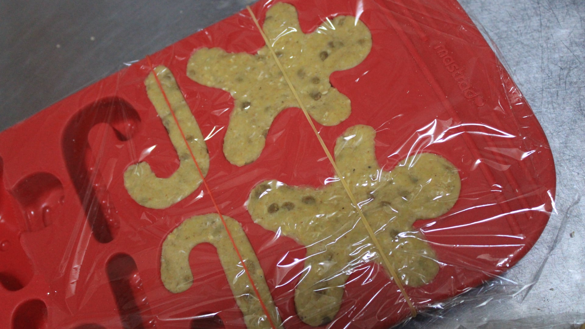4. 將塊狀麵糰放入薑餅人烤盤中,在模型中壓實成型。