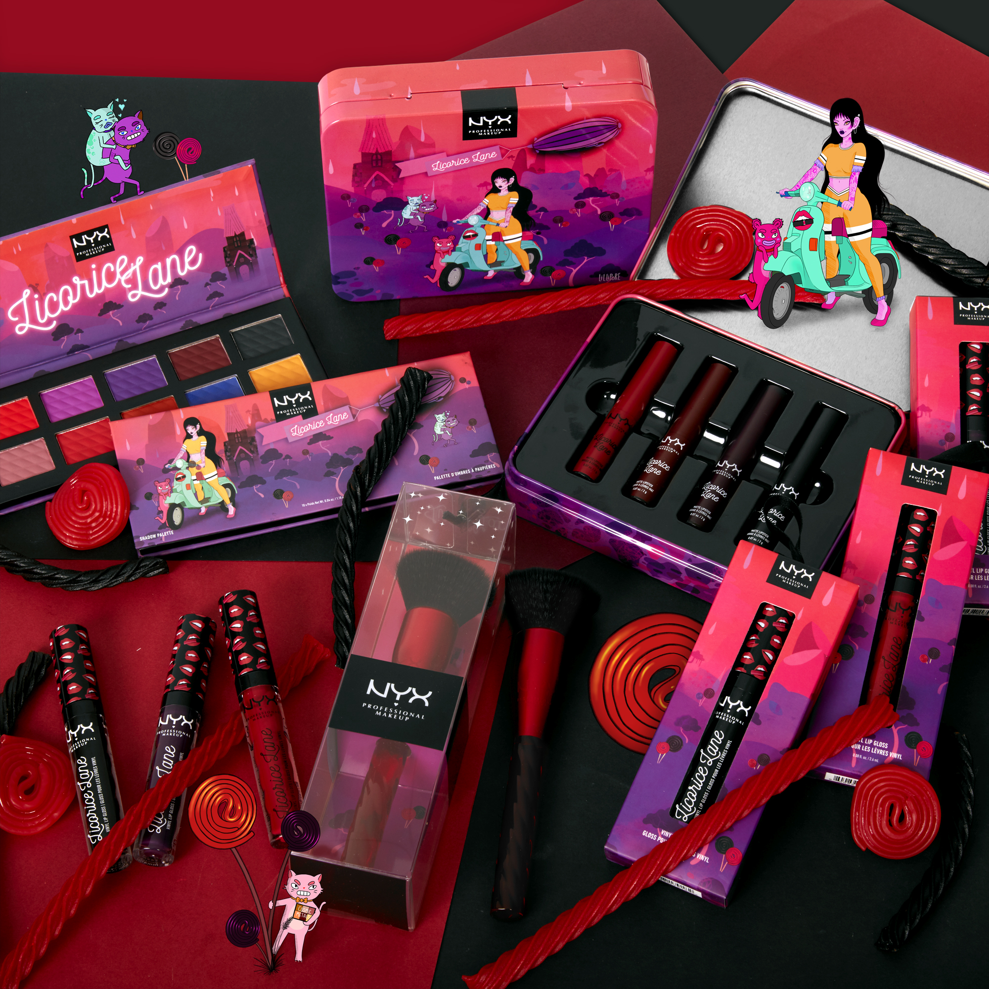 重妝專家NYX ProfessionalMakeup化身甜心蜜糖,全新推出聖誕限量彩妝「環遊蜜糖世界」,與LA插畫家Natasha Lillipore攜手合作,將充滿奇幻想像的糖果樂園融入彩妝,帶來「閃閃星城」、「奶油夢境」、「甘味小路」、「棒棒糖國」、「棉花糖樂園」、「糖果城堡」系列;六個蜜糖樂園、六個獨創角色,喚醒你的童趣玩心,一起悠遊於繽紛多彩的蜜糖世界!
