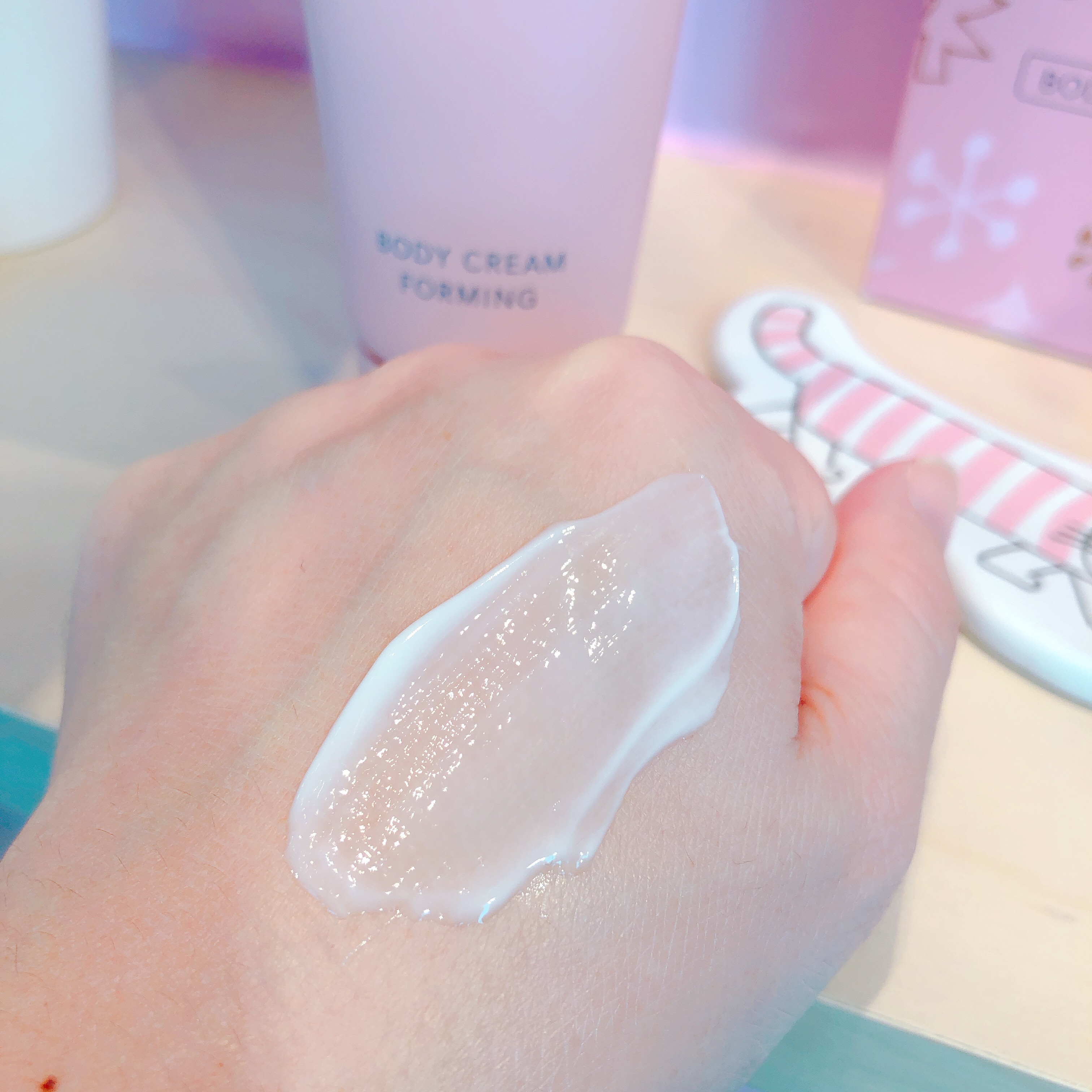 全新推出的美體霜為水感乳霜質地,塗抹後能充分貼合肌膚,並形成一層潤澤膜,讓肌膚長時間維持潤澤感,含有獨家美容成分(桂皮、柴胡、薑蔘根草萃取精華),咖啡因、海罌粟堿、地榆萃取精華、以及月桃葉萃取精華,可深度保濕,改善肌膚表面凹凸不均現象,同時添加3種維他命,肌膚更具透明感有美肌維他命之稱的維他命B5誘導體、淡化黑色素的維他命C誘導體,與可預防肌膚乾荒、老化、暗沉的維他命E誘導體。