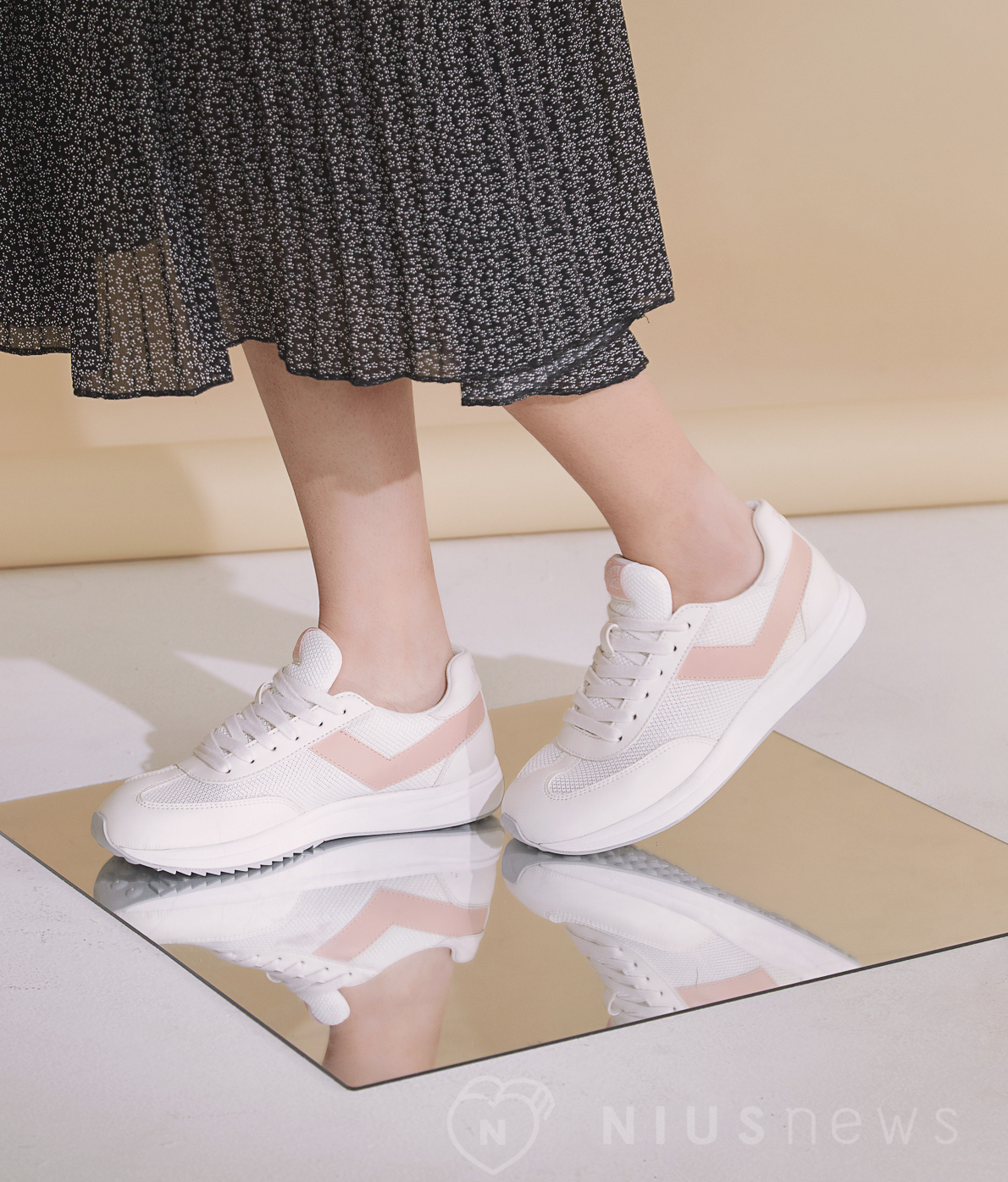 小白鞋中帶點輕粉紅,低調展現自己內心小女孩的一面!