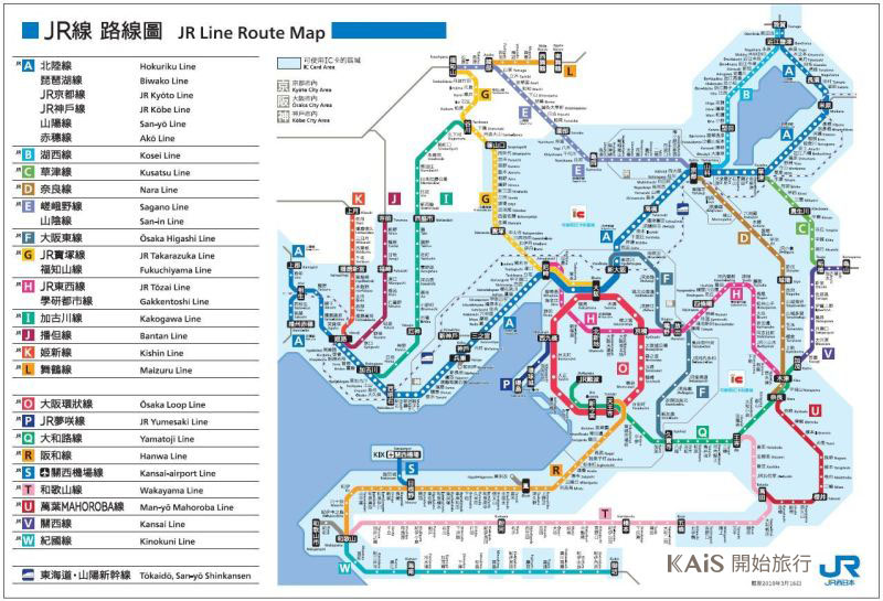 但要特別留意的是,選擇購買JR PASS 關西地區鐵路周遊,上方圖片的K線(只能搭到本龍野)、J線、I線、G線(只能到筱山口)、E線(只能到園部)、L線、W線是無法搭乘的喔~若主要是玩京都,其實這票在京阪神奈地區就很夠用惹