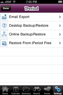 iPeriod是一款非常”詳細”的女性生理周期記載軟體,除了生理期之外,懷孕中的婦女也可以利用此軟體記錄身體狀況。除了基本的紀錄功能外,iperiod可以讓使用者自行選擇畫面顯示格式,喜歡簡潔畫面的妳,或是偏好詳細記載的妳,都可以在此軟體找到適合自己的模式。