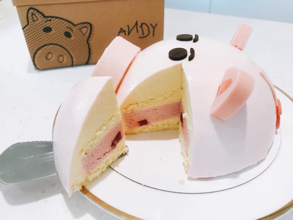 還記得電影裡可愛的火腿,有著粉紅色的圓滾滾外表,但卻有著反差萌的低沈嗓音,成功收服許多粉絲的心。這次推出的Hamm撲滿」蛋糕,就還原了卡哇伊的粉色圓鼓鼓頭部造型,以比利時特級巧克力、添加白巧克力點綴成五官,接著肚子中還包裹著草莓、鹹香草白巧克力雙重慕斯,酸甜幸福滋味就跟外表一樣討人喜愛。