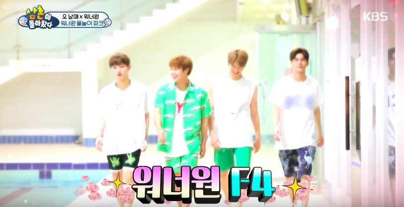 Wanna One出場就超閃亮,節目組還給他們冠上了「泳池F4」名稱!整個超有氣勢~不過泳池F4自己一直偷笑...是不是有點害羞呢?
