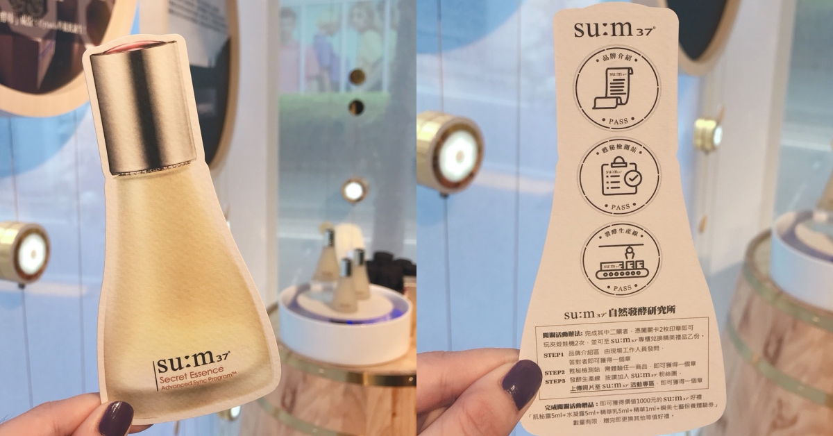 由牛奶肌男神所代言的su:m37˚,這次特別把韓國的自然發酵研究所搬運到台灣啦!為了還原研究所的樣貌,以原始感木牆搭配純淨透明玻璃屋呈現,更將發酵桶空運來台,讓大家實際體驗發酵的過程!體驗館內不僅可以試用最新的「活酵保濕光澤保養系列」,只要完成兩關體驗,就能免費獲得價值千元的好禮(肌秘露5ml+水凝露5ml+精華乳5ml+精華1ml+瞬美七藝保養體驗券),拍照打卡上傳,還能玩娃娃機,獎品除了有商品現金券、試用品,還有正貨,有夠大手筆!