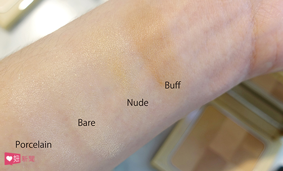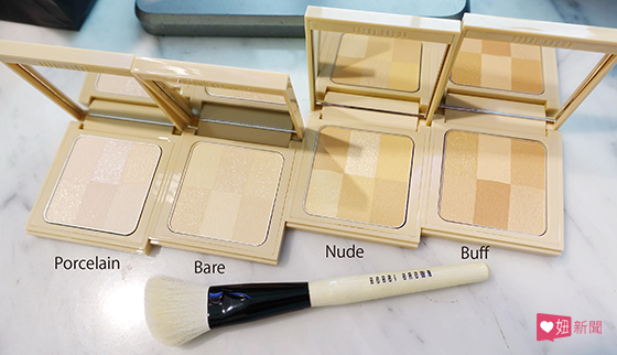 「彷若裸膚蜜粉餅」共推出6種色選,這次引進的是適合多數台灣女生的4個色號:最白色#Porcelain適合Bobbi Brown粉底使用色號為0-1號、#Bare適合2-3.5號、#Nude 適合4-4.5號、最深色#Buff 則適合粉底色號為5號以後的妞妞。