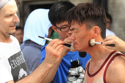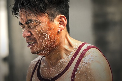 而在另一場,導演陳德林特別安排王寶強秀出苦練多時的大胸肌,半裸上陣,胸膛上還畫了可怕的大傷疤,讓他笑說:「特效化妝幫助我,更貼近角色,讓角色更突出了。每一個男人心中,多少都有隱藏著一些兇狠與暴力,我這回殘暴得很過癮。」