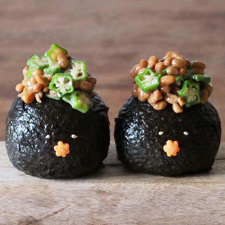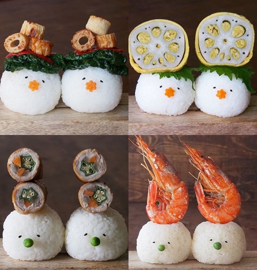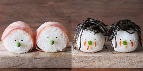 不同於一般飯糰都是把食材放入米飯中,nzngram反而是讓食菜都放在飯糰人的頭頂,層層疊疊的食物,讓人超級佩服她的巧手藝!(感覺拍照前一定掉了很多次XDDD)
