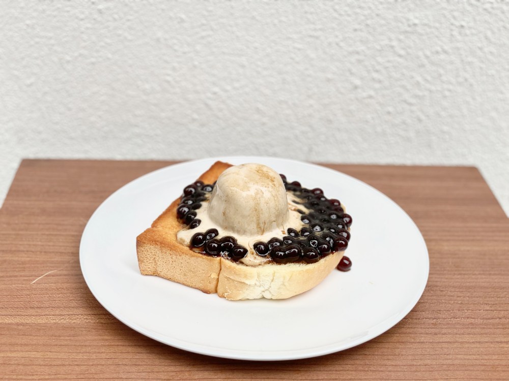 珍煮丹還於部分門市推出「黑糖珍珠雪熔厚片」,將塗抹鹹香奶油的吐司烤至金黃微焦後,放上一顆黑糖拿鐵雪球,再淋上黑糖珍珠,滋味冰火相容、甜而不膩,甜食控必吃!(限定輕食門市提供)