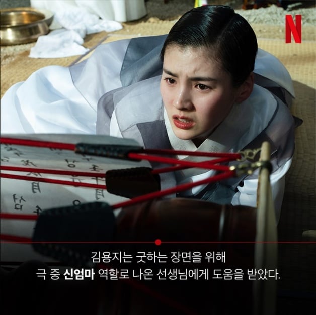 擁有神力的木杬,金容智為了跳大神的「神靈附體」場面,特別像劇中扮演神婆的老師那得到了幫助!