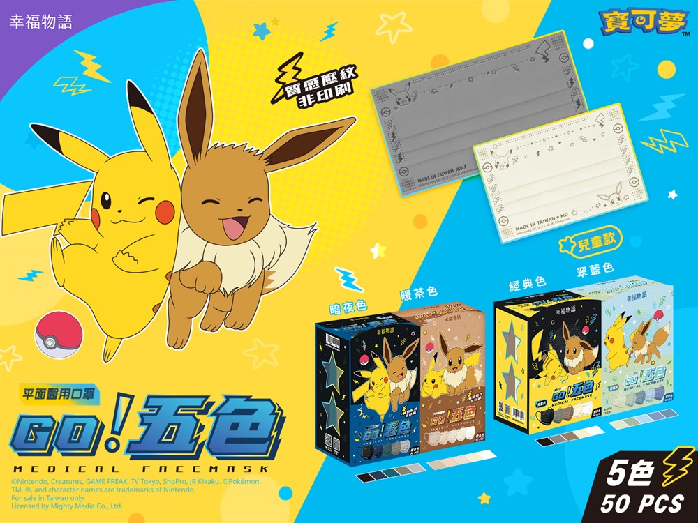 幸福物語口罩-寶可夢系列,結合了卓越的防護性能與寶可夢設計,為您和家人們提供最好的防護。這款口罩不僅能有效防止飛沫的侵害,更能讓您在日常生活中展示出個性和風格。不僅僅是一個防護用品,更是一個時尚配件,讓您成為人群中的焦點,目前已在全台各大通路上架,快來去抓寶!