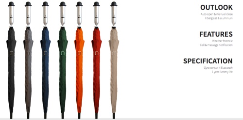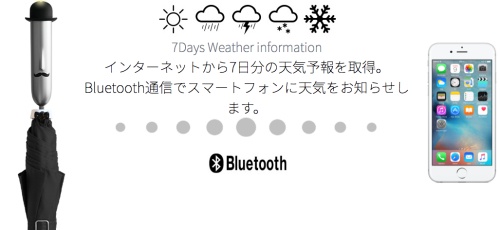 這把雨傘具備了預測一週天氣的功能,只要開啟手機的藍芽系統,就可以與手機的天氣App與之做連結(iOS系統與Andriod系統均適用)。