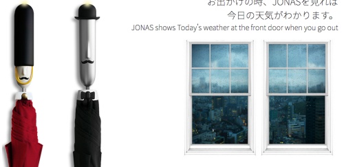 要判斷需不需帶雨傘,只要讓Jonas與手機系統連結後,它的帽子上方會發出亮光,如果顯示綠色就代表不需要帶傘、顯示紅色則代表需要帶傘,如果紅色燈閃爍的話就代表雖然沒立即下雨的可能性,仍建議你帶著傘以備不時之需。(是不是很聰明呢~)