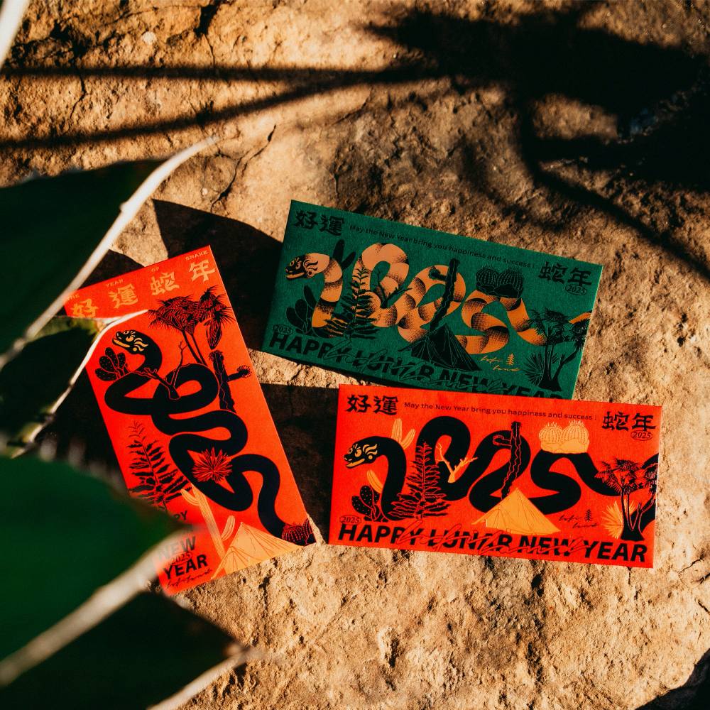 由自然圈農場所推出的蛇年限量紅包,在傳統框架中重新建構出富有潮流感的特色設計。除了呼應蛇年的蛇元素令人印象深刻,厚磅紙質加上絕美燙印,也都相當值得作為藝術品收藏。