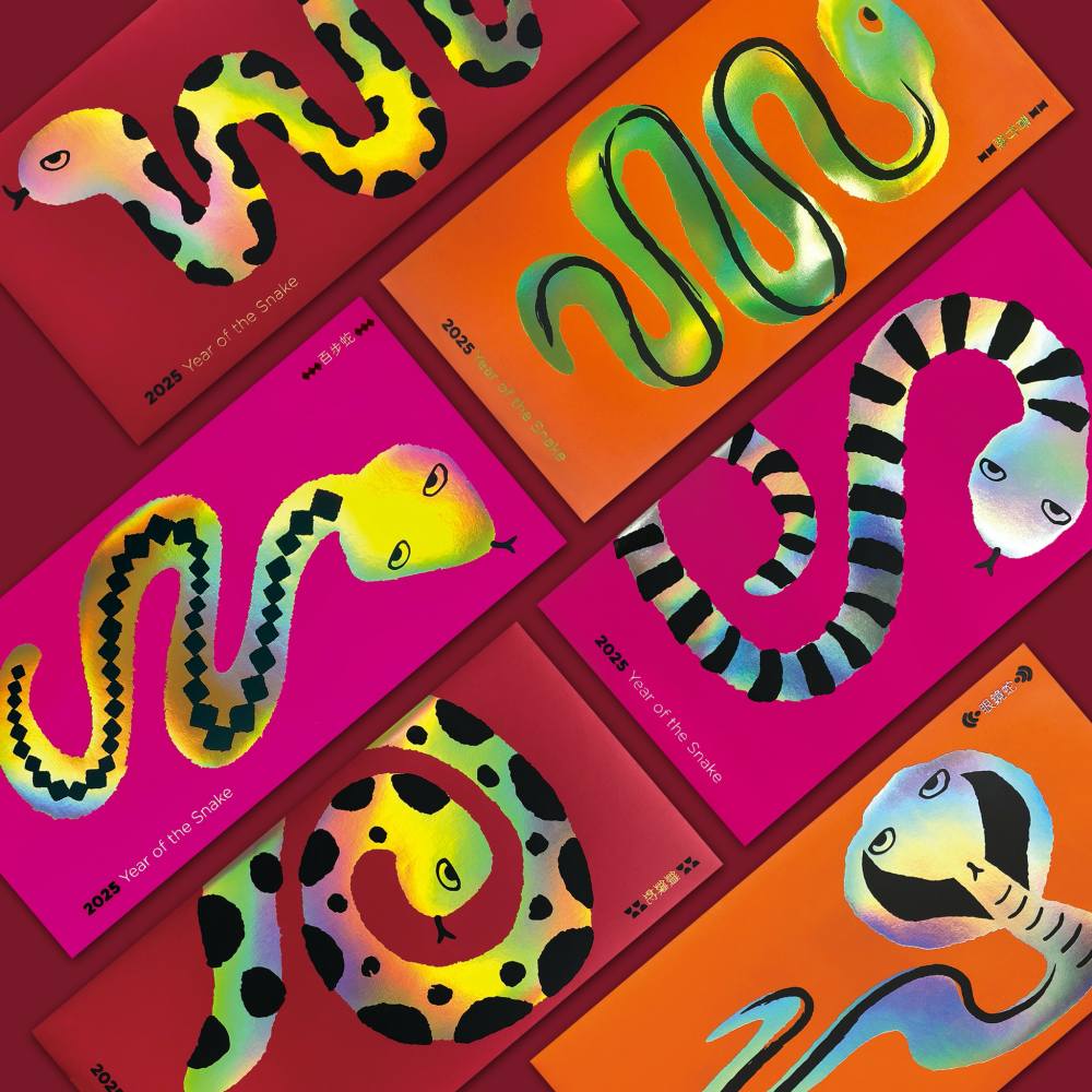 Hsing Ling Design 在蛇年隆重獻上六款醜萌系的厭世蛇紅包,打破傳統的審美視角,營造出獨特且帶有惡趣味的紅包袋。採用金、銀、綠三種雷射燙印,不僅讓紅包袋變得繽紛亮眼,隨著光線落下,更能散發出璀璨光芒。