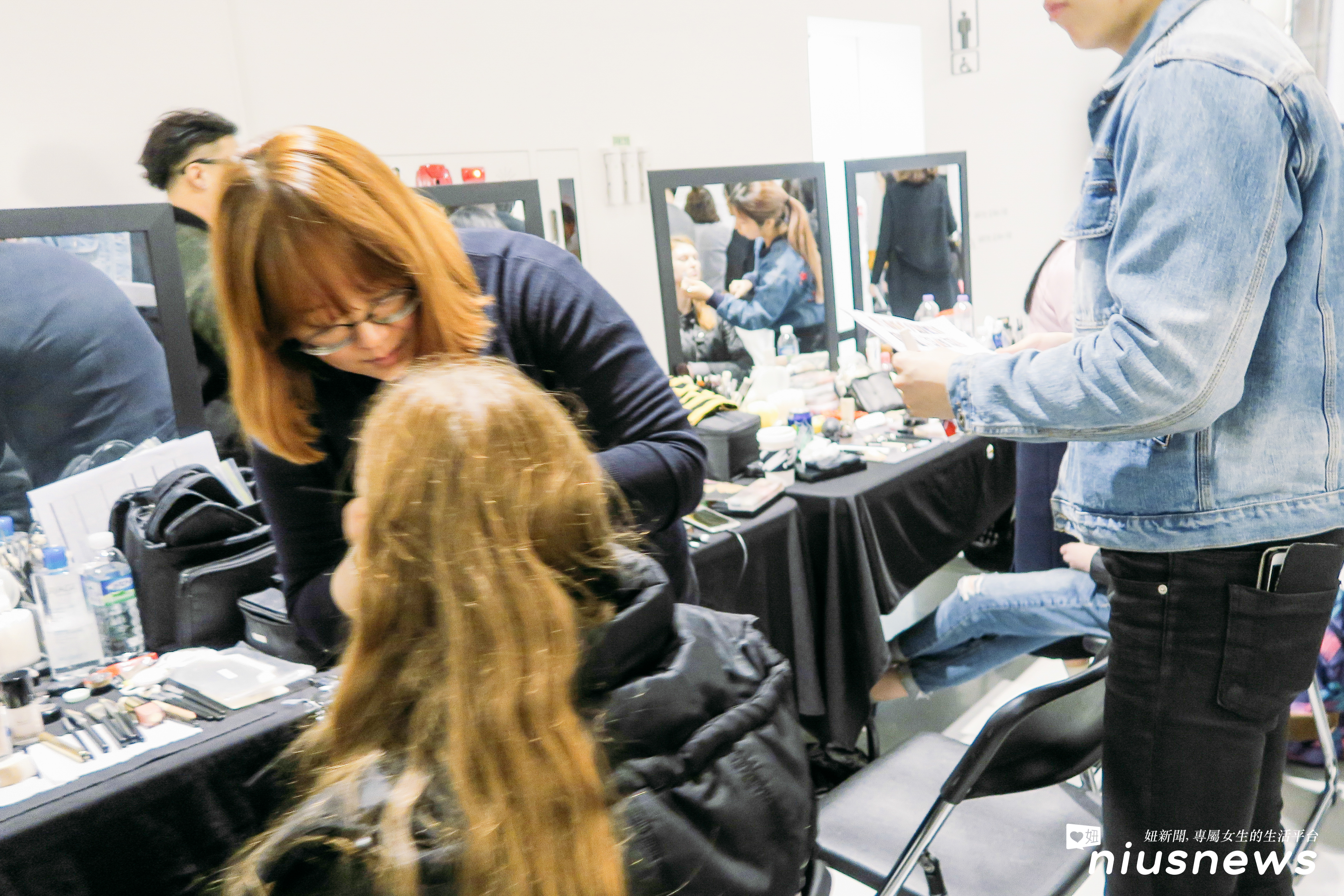 這就是傳說中的後台,真的充滿化妝師、化妝鏡、化妝品、模特兒~~只是傳說中滿滿的裸男裸女在哪邊咧?(總編在一旁說歹路嘸通行啦~孩子)